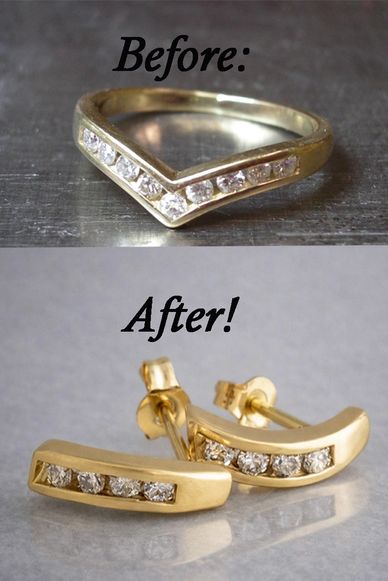 Sometimes sentimental stones are just that, sentimental. It doesn't mean that they can't be incorporated into a new design just because their monetary value is low. Here, we took an imitation green stone from a lost earring and created a new ring. Paula invisioned a rope twisted design with a double shank and a wavy middle. We used the diamonds from her earrings as accent stones. For the white gold ring, she envisioned a bypass shank and asked if I could incorporate the tops of the studs exactly as how they were set originally (absolutely I can). The result is a beautiful flowing ring.